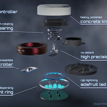 Weighted true concrete knob, suspended on a steel bearing, brings the knob's tactile feeling to a whole other level.